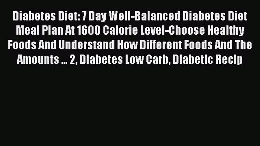 Ebook Diabetes Diet 7 Day Well Balanced Diabetes Diet Meal Plan At 1600 Calorie Level Choose Centurylink